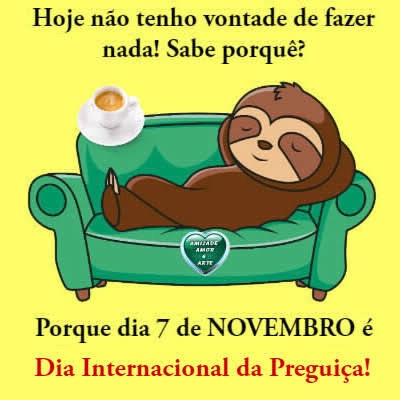 Hoje é o dia da preguiça e, não sei o motivo para não ser considerado feriado nacional. Já que temos tantos feriados sem sentido e/ou com sentido para poucos, este seria um ideal para todos.