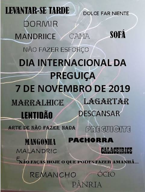 Eu não sei vocês mas, tem dias que amanheci com vontade de fazer nada. Se me deixassem eu nem sairia da cama. Coincidentemente, o dia 07 de novembro é reconhecido como o dia internacional da preguiça!